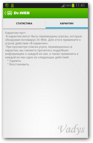 • Перемещение обнаруженных угроз в карантин с возможностью восстановления файлов оттуда.