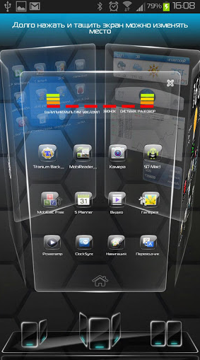 Новая оболочка рабочего стола, программа запуска приложений (launcher) с шикарными возможностями, 3D режимом, большой кастомизацией и фантастическими эффектами-