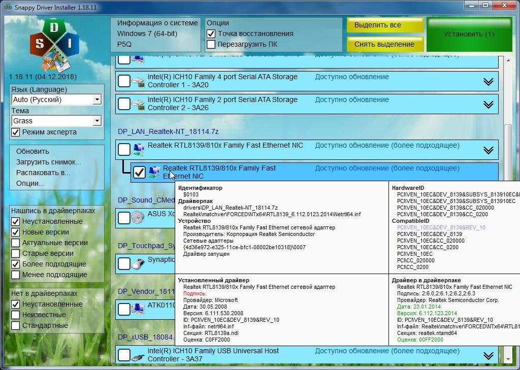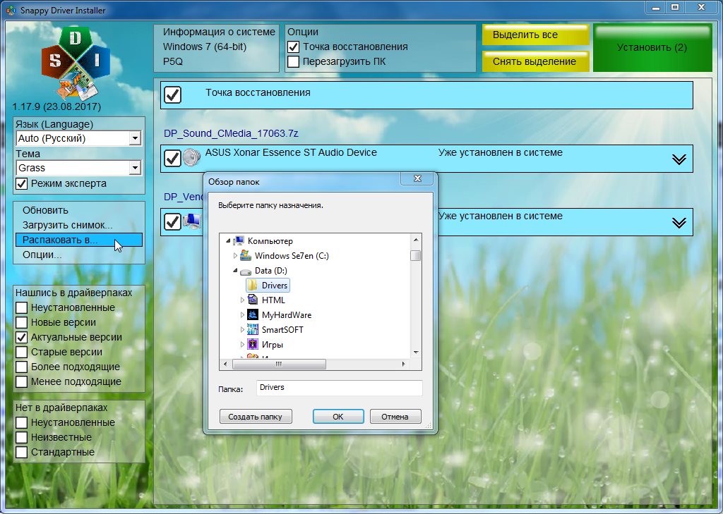 Note: Так как драйверы для резервной копии берутся непосредственно из драйверпаков, потому что копирование установленных драйверов не может быть корректным по причине отсутствия/удаления некоторых файлов, необходимых для установки, то помимо конкретных драйверов, программой будут распакованы и некоторые другие. Не стоит удивляться файлам, не имеющим непосредственного отношения к конкретному драйверу.