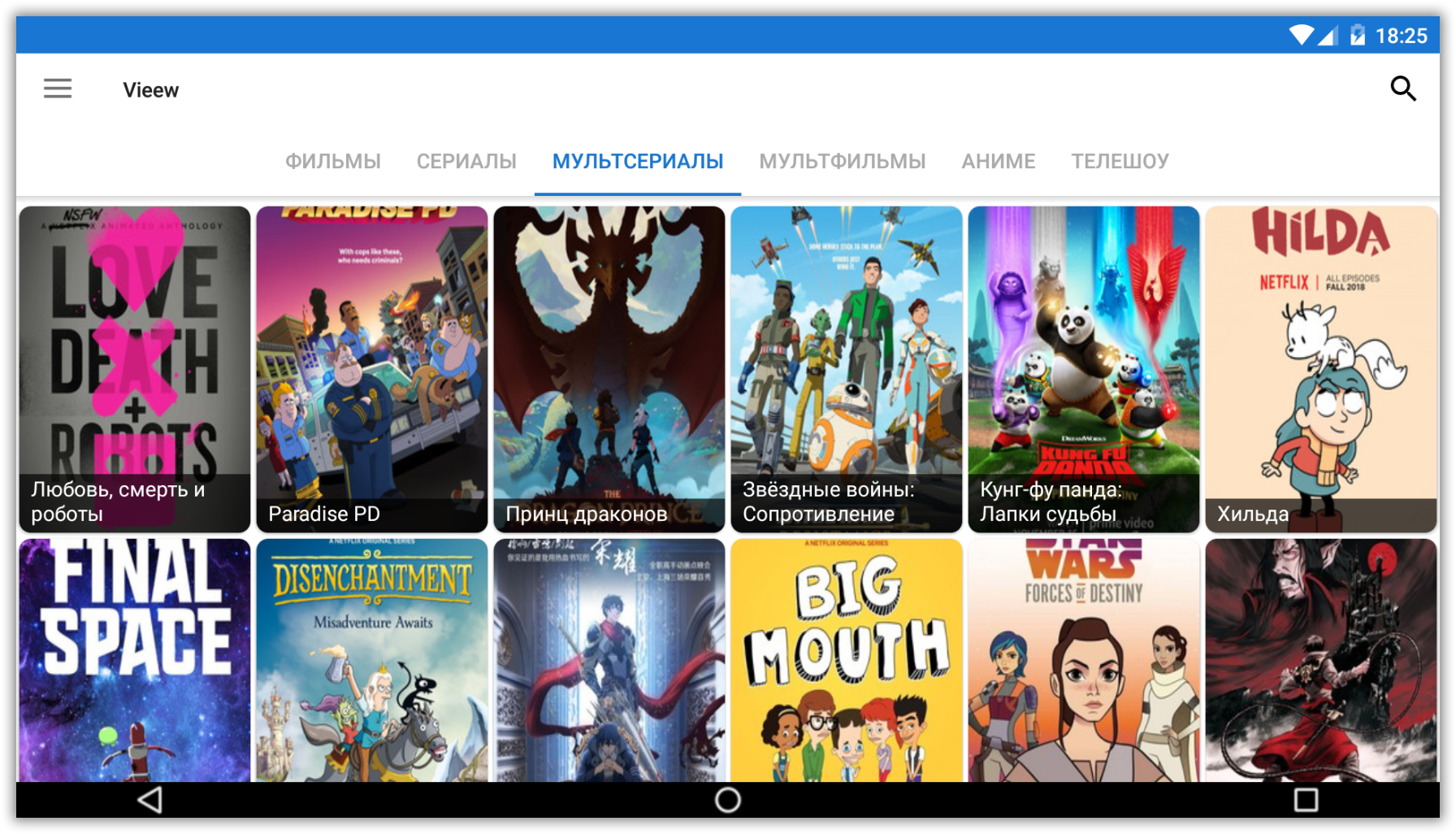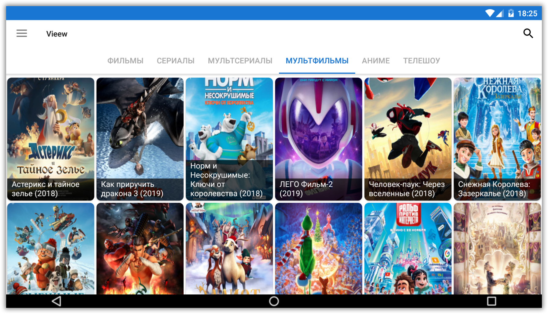 Vieew - приложение для Android устройств (в том числе планшетов), с помощью которого вы сможете смотреть фильмы, сериалы, мультфильмы и прочее.-