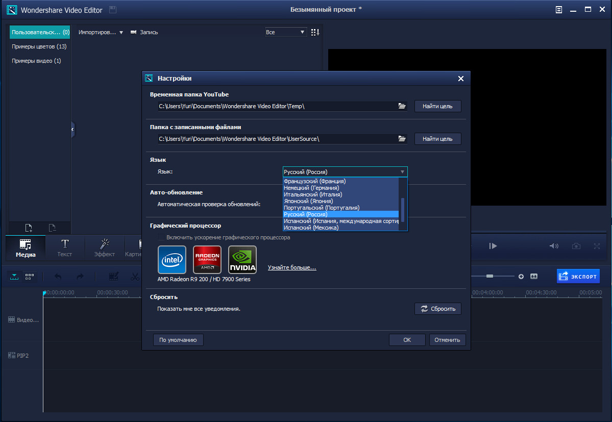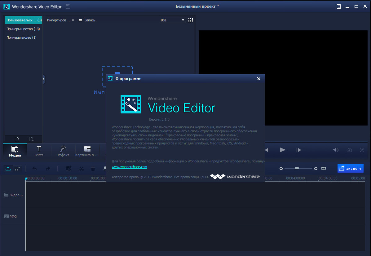 Wondershare Video Editor - удобный видеоредактор, содержащий все необходимые инструменты для редактирования видео. Вы сможете создавать высококачественные фильмы с титрами, применять фильтры, эффекты перехода, обрабатывать звук. Кроме этого, программа поможет напрямую загрузить свое видео на YouTube для обмена с друзьями и семьей, сохранить видео для воспроизведения на портативных устройствах, таких как iPhone, IPAD, IPod и т.д., или записать DVD.