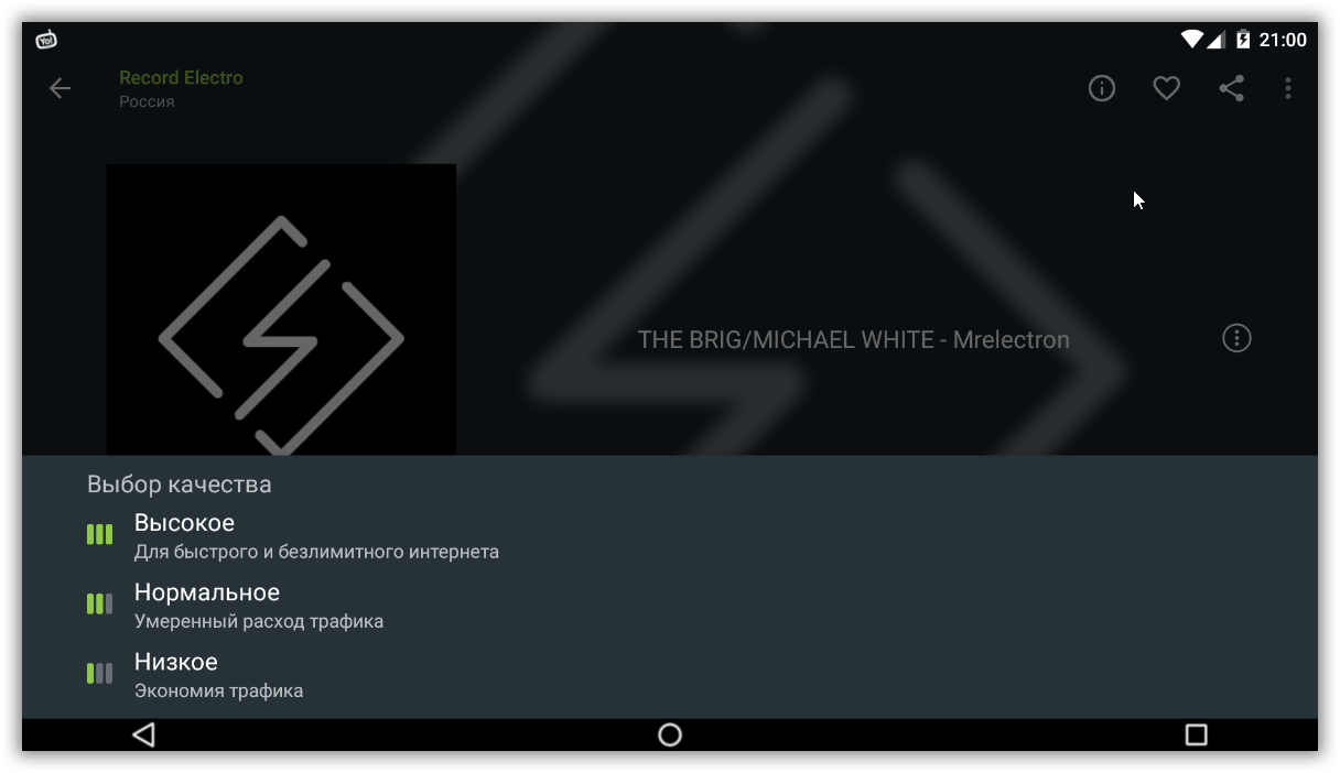 Большой каталог интернет-радио с выбором качества звука и другими полезными функциями.