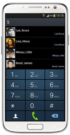 Умная фильтрация контактов и истории вызовов при помощи T9 (включая русский и украинский языки);