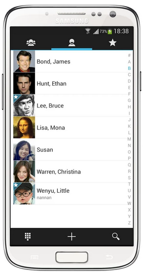 Быстрая прокрутка списка контактов с алфавитным разделителем;
