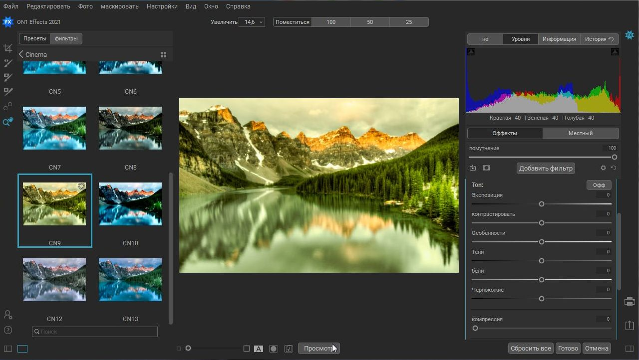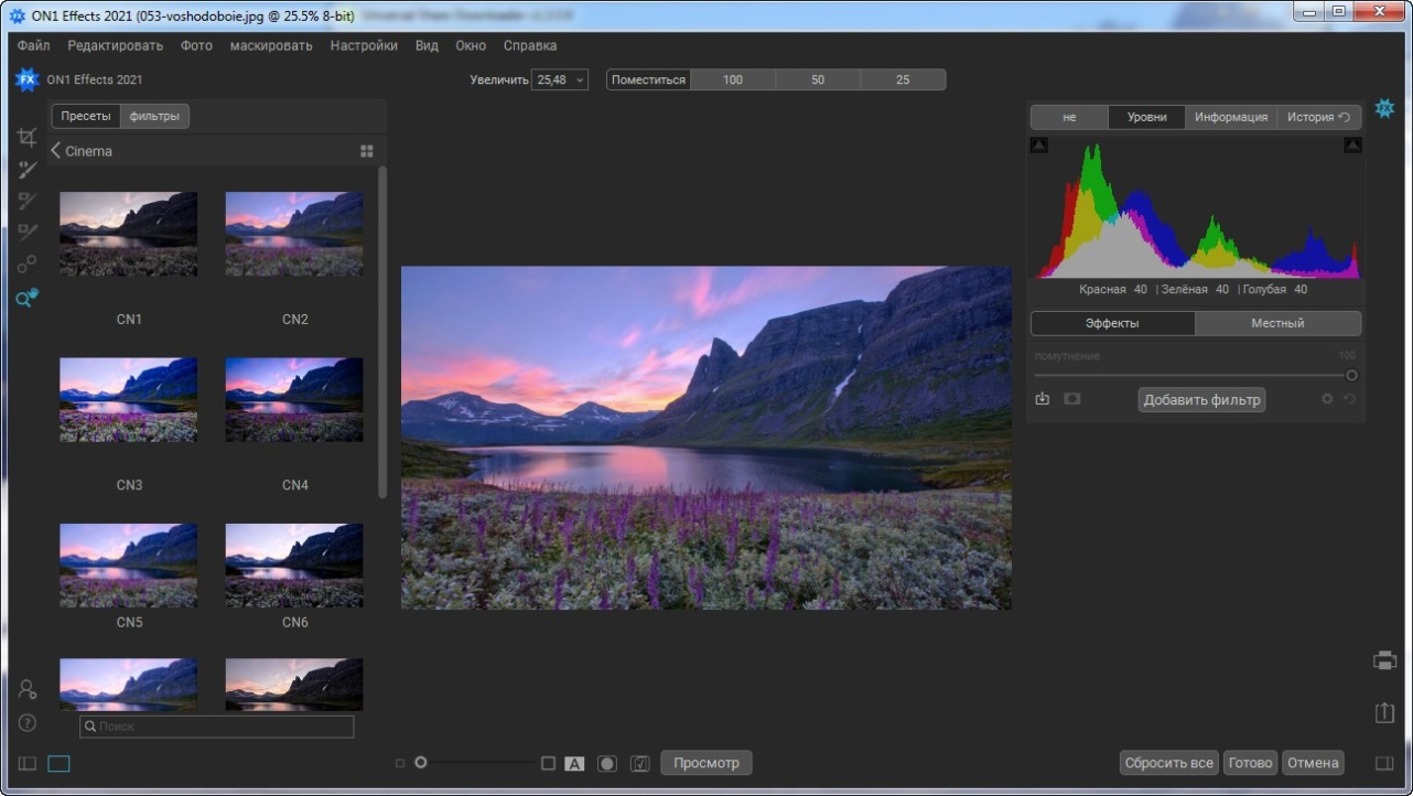 ON1 Effects 2021 включает в себя сотни встроенных фотоэффектов, фильтров, LUT, границ, текстур и пресетов - все это полностью настраивается под ваш стиль.