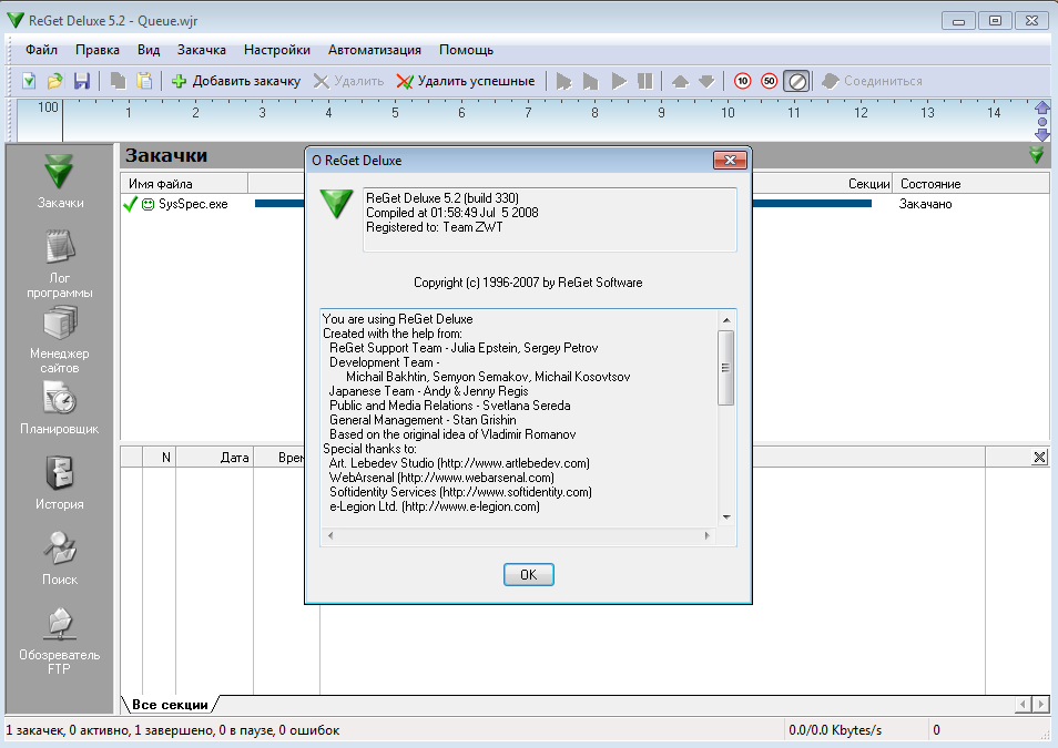 Разработчик: ReGet Software (© 1996-2007)
